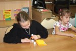 В конце программы ребята из приготовленных деталей сделали поздравительную открытку для своих мам.