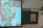 Школьники послушали солдатскую сказку К. Паустовского «Похождения жука-носорога» В ней рассказывается о солдате Петре Терентьеве, который перед уходом на фронт получил от своего сына в подарок настоящего живого жука. Во время войны жук становится другом Петра. Далее им предстоит пройти немало трудностей и вместе вернуться домой.