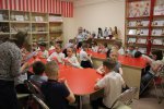6 мая первоклассники МАОУ СОШ №4 приняли участие в акции "Дерево Победы". Гвоздиками, которые сделали ребята на творческом мастер-классе, были украшены деревья на территории библиотеки.