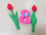 8 марта - первый весенний праздник, день, когда мы поздравляем своих мам, бабушек, сестрёнок, самых близких и дорогих нам людей. Одним из традиционных подарков и символов праздника являются тюльпаны. Маленькие, хрупкие, нежные, с нераскрывшимися бутонами, весенним приятным запахом и длинными листьями они по праву занимают первое место среди самых любимых и ожидаемых подарков к 8 марта. Именно поэтому на очередном занятии клуба «Воскресенье» мы постарались сшить из фетра любимые цветы для наших мам. Конечно, тюльпаны из фетра не сравнятся по красоте с настоящими, не подарят нам свой нежный аромат, но они никогда не завянут, и наши родные ещё долго будут ими любоваться!