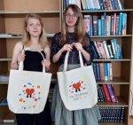 Девушки выбрали для своих шопперов понравившиеся рисунки, затем перенесли их эскизы на ткань и придумали оригинальные подписи. Затем из большого количества цветов акриловых красок выбрали для своих рисунков подходящие и раскрасили сумки. Шопперы получились очень яркими и стильными.