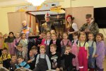 Спектакль посетили воспитанники и родители ДОУ № 63 г.Томска. Главные герои, не только рассказали историю Красной Шапочки, но и создали музыкальное сопровождение спектакля: Красная Шапочка играла на флейте, Бабушка на клавесине, Волк на ударных инструментах, Охотник исполнял партию на гитаре и скрипке. Дети приняли активное участие в спектакле.